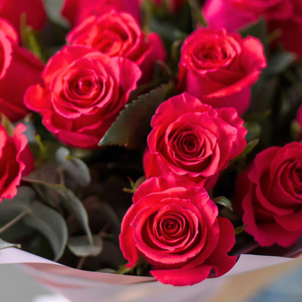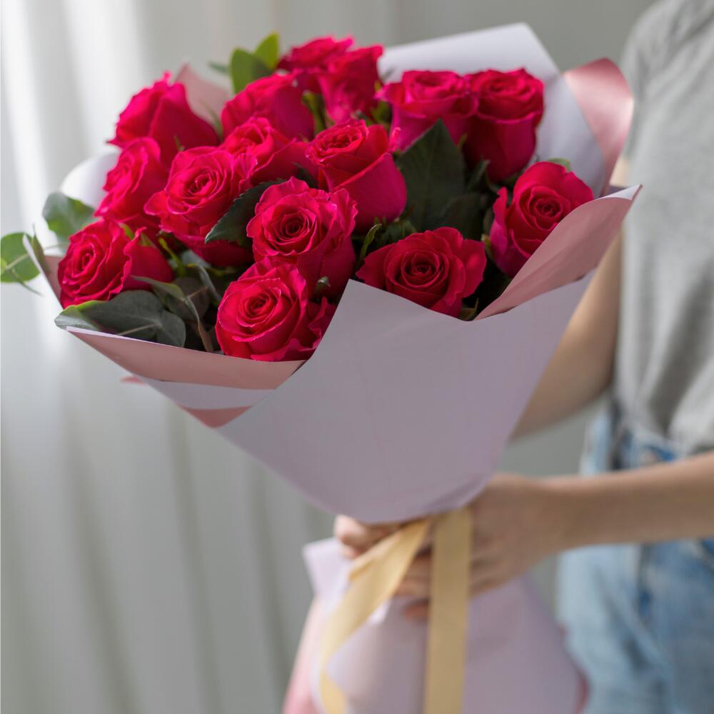 Этот великолепный букет из 15 ярких сочных малиновых роз, окруженных нежным эвкалиптом, станет настоящим символом страсти и любви. Каждая роза излучает тепло и яркость, создавая неповторимую атмосферу праздника и радости. Дизайнерская упаковка придаёт композиции особый шарм, делая её Прекрасным подарком для девушки, жены, любимой, подруги. Подарите этот букет, и он не только украсит любой праздник, но и оставит незабываемые впечатления в сердцах тех, кто его получит.